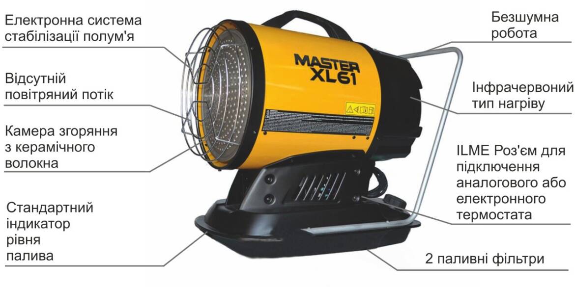 Теплова гармата MASTER XL 61 є високоефективним пристроєм спрямованої (інфрачервоної) дії.