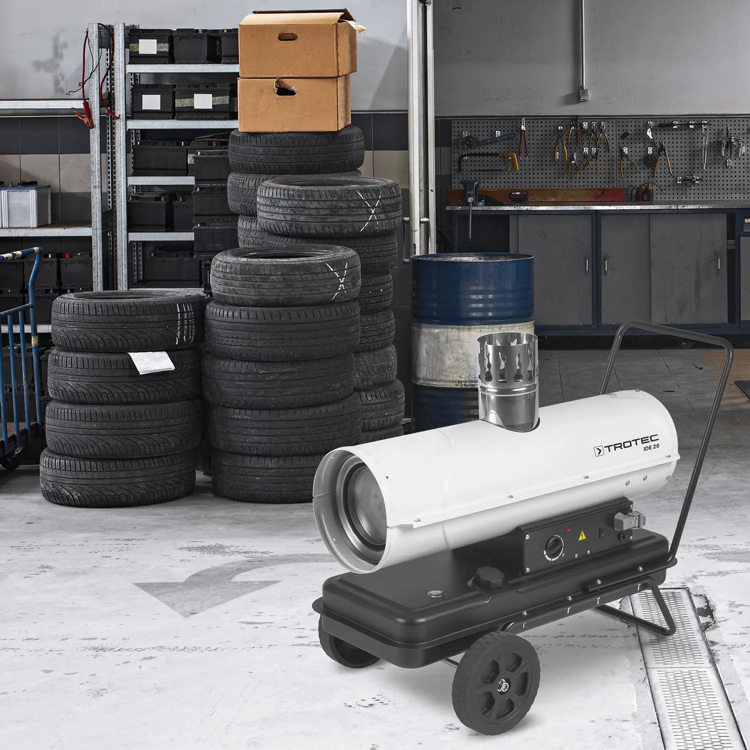 Найменший масляний вентилятор серії IDE від Trotec стане великим успіхом, якщо ви шукаєте компактне, недороге та надійне рішення для гнучкого опалення. У майстерні, на складі, на виробництві чи на будівництві – з потужністю опалення 20 кВт IDE 20 впевнено генерує чисте та сухе гаряче повітря до 600 м³/год.