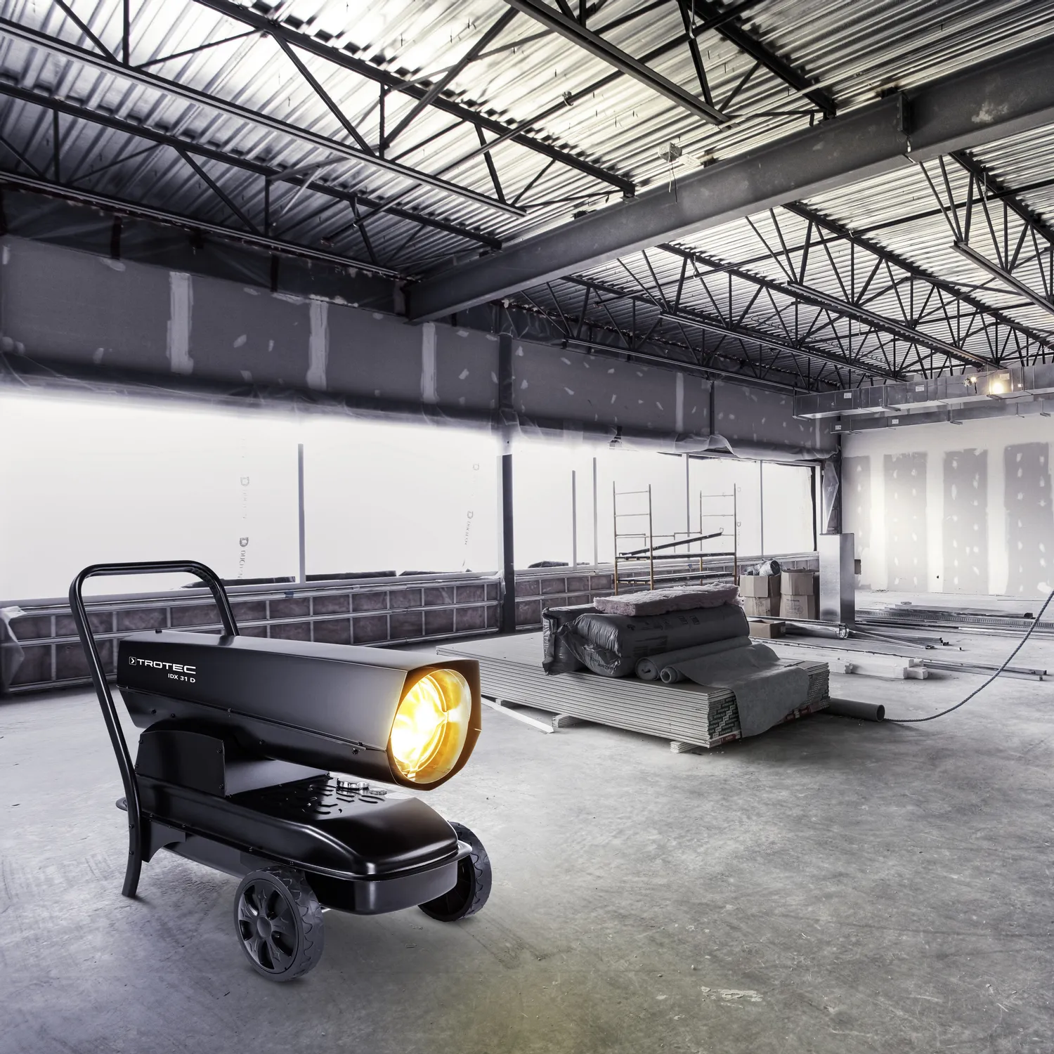 Незалежно від того, чи є це в майстерні, у стайні, у добре вентильованих складських приміщеннях чи критих приміщеннях на відкритому повітрі – там, де немає опалення або необхідно ефективне додаткове опалення, вентилятор масляного нагрівача IDX 31 D переконує, якщо будівельний майданчик має бути перерваний або навіть при припиненні виробництва бажано нагріти корпус будівлі. Будівельні матеріали, такі як стяжка або штукатурка, потребують певної мінімальної температури, щоб з ними було легко працювати. За допомогою вентилятора масляного нагрівача IDX 31 D ви можете забезпечити достатню температуру в добре провітрюваних приміщеннях, щоб завершити роботу вчасно.