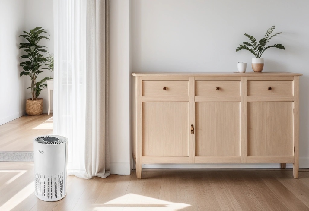 Очищувач повітря NEO Tools 90-122 з 4-ступінчастою системою фільтрації. Має нічне підсвічування та функцію таймера. Ефективний HEPA-фільтр відфільтровує 99,97% дрібних частинок пилу, пилку, пилових кліщів та забруднень повітря PM 2.5. Фільтр із активованим вугіллям нейтралізує небажані запахи. Тонкий фільтр попереднього очищення утримує волосся, пластівці та ворсинки, забезпечуючи більш здорове та чисте повітря в приміщенні. Робота очищувача на низькій швидкості з рівнем шуму 30 дБ не порушує ваш сон та відпочинок. При високій швидкості та помірному обсязі повітря в приміщенні очищається ефективніше. Керування за допомогою сенсорної панелі з індикаторами якості повітря та зносу фільтра. Підходить для приміщень площею 22 м2.