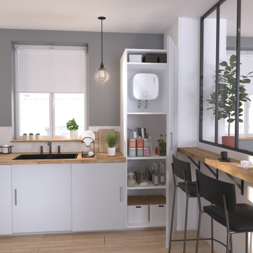 Електричний водонагрівач Atlantic Nanto SWH 10A M-N1 2000W призначений для встановлення над мийкою та дозволяє забезпечити гарячою водою одну точку водопостачання. Завдяки компактним розмірам і дизайну у формі призми водонагрівач зручно розташовувати у кухонних меблях.