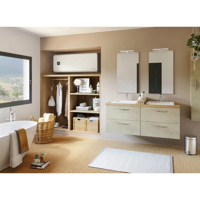 Побутовий електричний водонагрівач Atlantic Vertigo Steatite WI-FI 120 у класичному білому кольорі представляє флагманську лінійку французького бренду, поєднуючи в собі значний об'єм та інтелектуальні технології. Головною перевагою моделі є вбудований Wi-Fi модуль, який через мобільний застосунок Cozytouch дозволяє власнику дистанційно керувати приладом, встановлювати персональні графіки роботи та детально аналізувати витрати електроенергії. Оновлення серії у 2021 році принесло пристрою сучасну сенсорну панель у формі краплі та оптимізовану систему енергозбереження, що разом із високоточним електронним термостатом допомагає зменшити рахунки за електрику до 15%.
