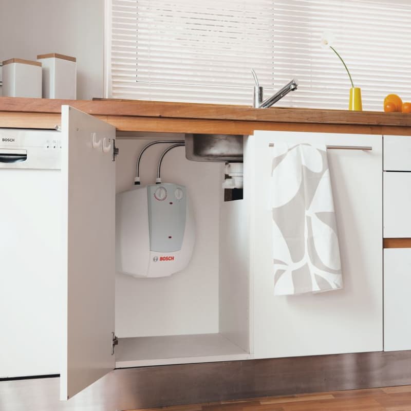 - Електричний бойлер Bosch Tronic 2000 T mini ідеально підійде для підключення однієї точки водозабору. Електробойлер розміщується над раковиною або під раковиною.