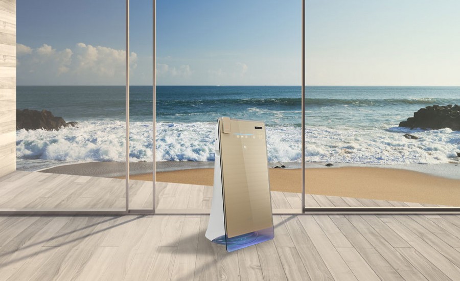 Также комплекс имеет стильную LED подсветку основания нижней части, которая сигнализирует об уровне загрязненности воздуха в помещении. Новый дизайн позволил разместить все очистные фильтры на задней панели устройства.